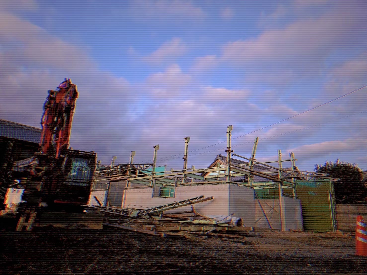 過去の解体現場のお写真です!鉄骨の解体現場だったんですが、スレートを撤去作業の際に、結構重くて支える時に足がプルプルした解体現場です!笑