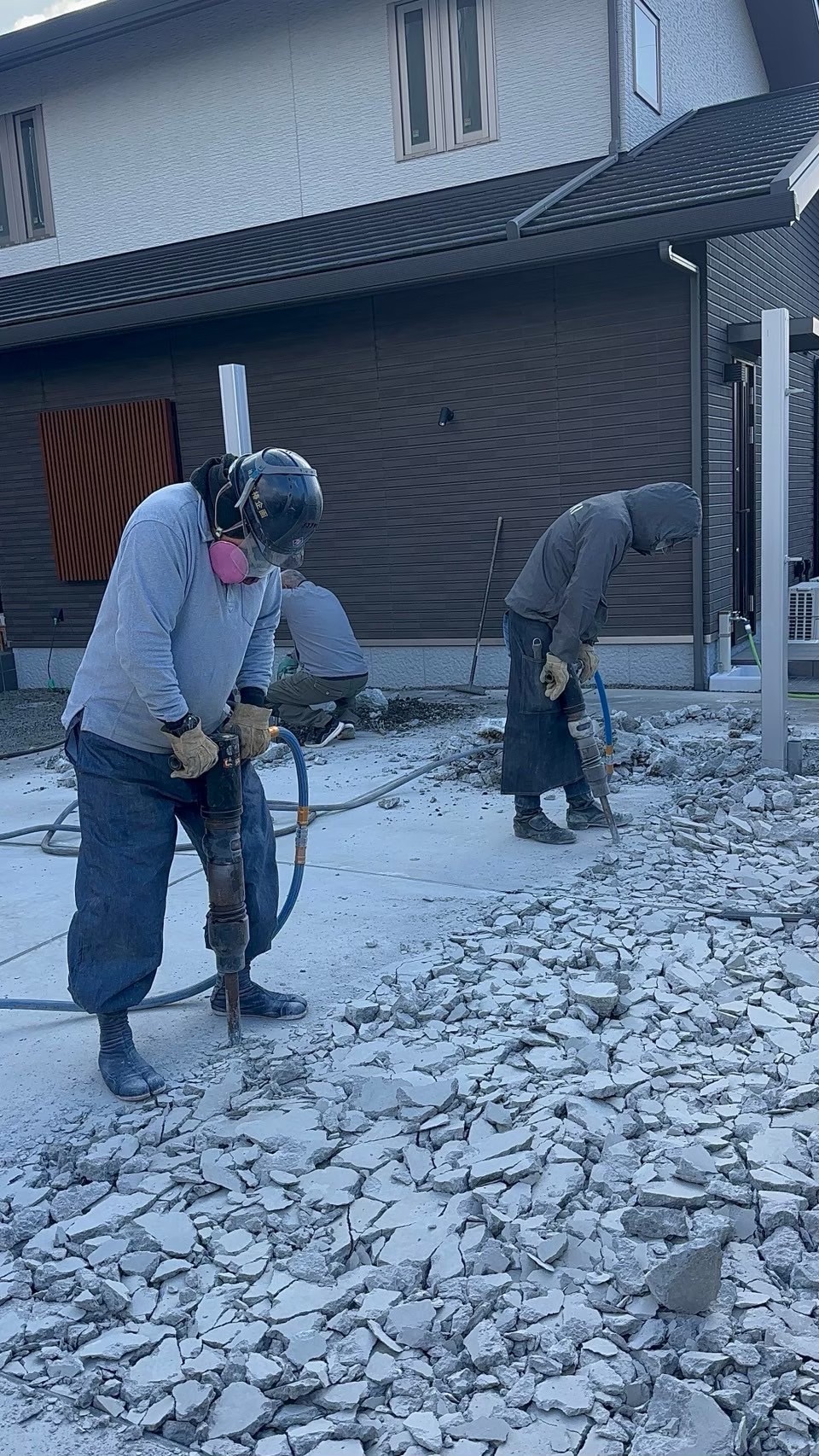 過去の現場での斫りの施行写真です!斫りの道具自体結構重くて、斫り最中でも全身に振動が伝わるのでとても疲労がたまるそうです💦
